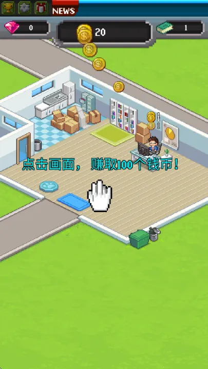 2. 游戏特色鲜明,像素画风独特,操作简单易上手,轻松点击就能赚钱,还能管理公司、雇佣员工、装饰办公室,满足玩家对商业经营的想象。