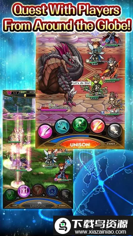 3. 采用即时操作战斗模式,技能手动释放,能量积满可发动UNISON技能,攻击防御与集气指令配合,左右战局走向。