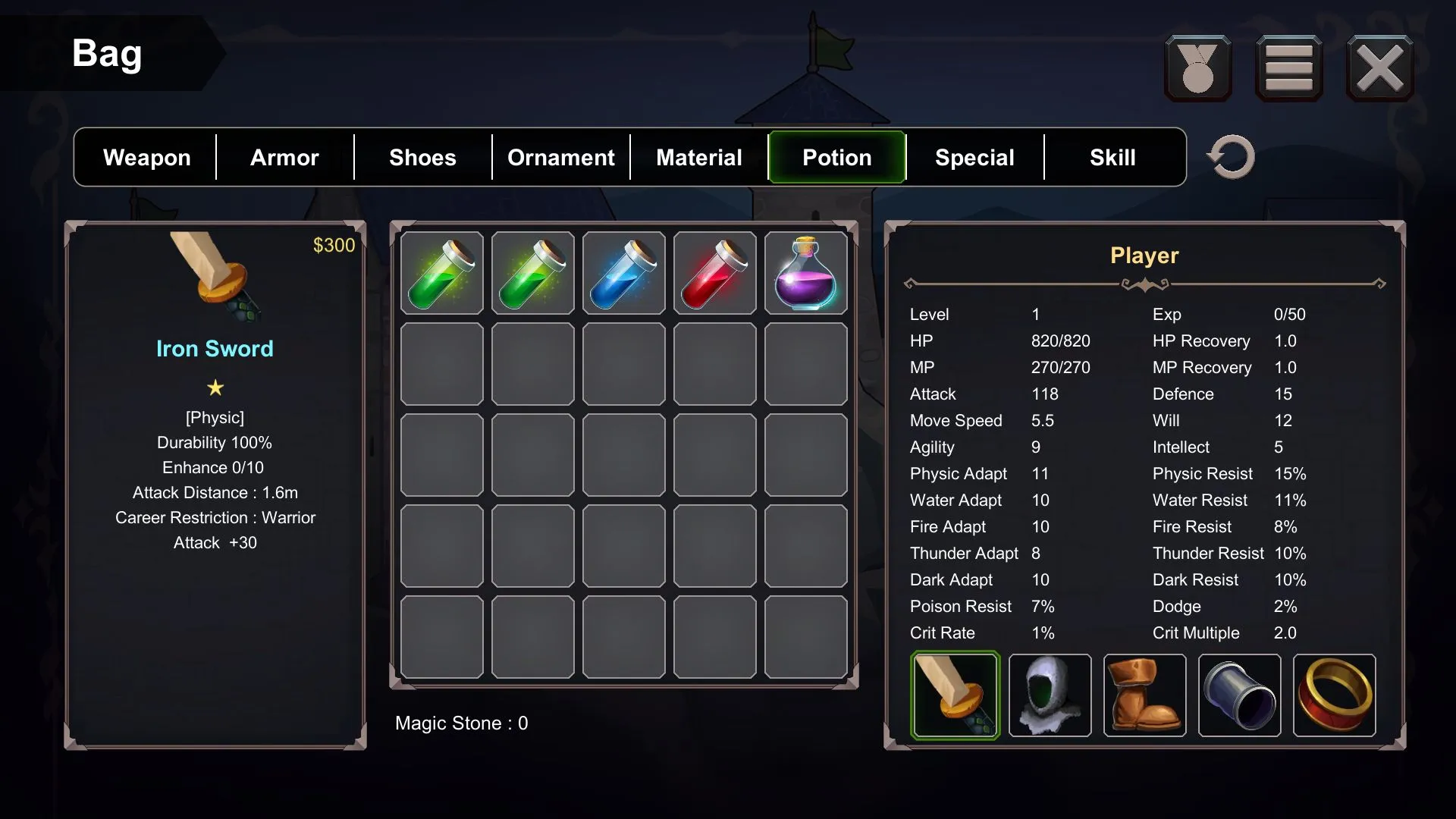 4. 武器锻造完善,能重铸史诗装备属性,消耗五个同品质装备可突破强化阶段。