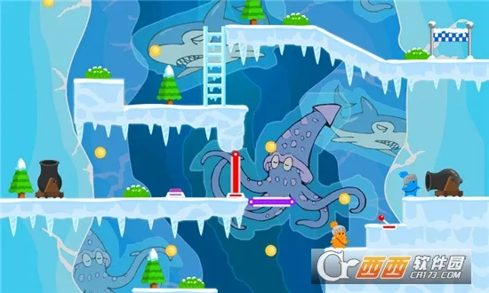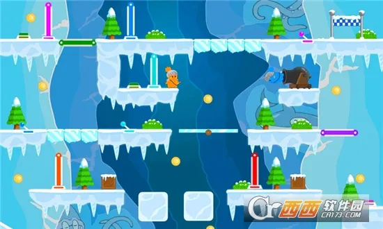 2. 支持双人协作,背景设定在南极洲冰封世界,两位猫咪战士相互配合克服障碍收集金币,完成冰冷探险。