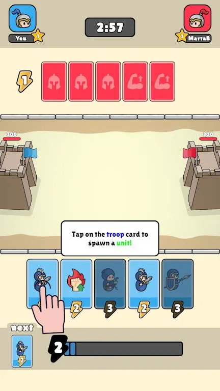 1. 游戏节奏明快,1v1卡牌对战分秒必争,每张卡牌都关键,让人沉浸其中。