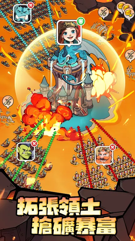 4. 要面对熔岩巨兽挑战,召集盟友组队战斗,在争夺宝藏资源战斗中成为富豪,扩展领土。