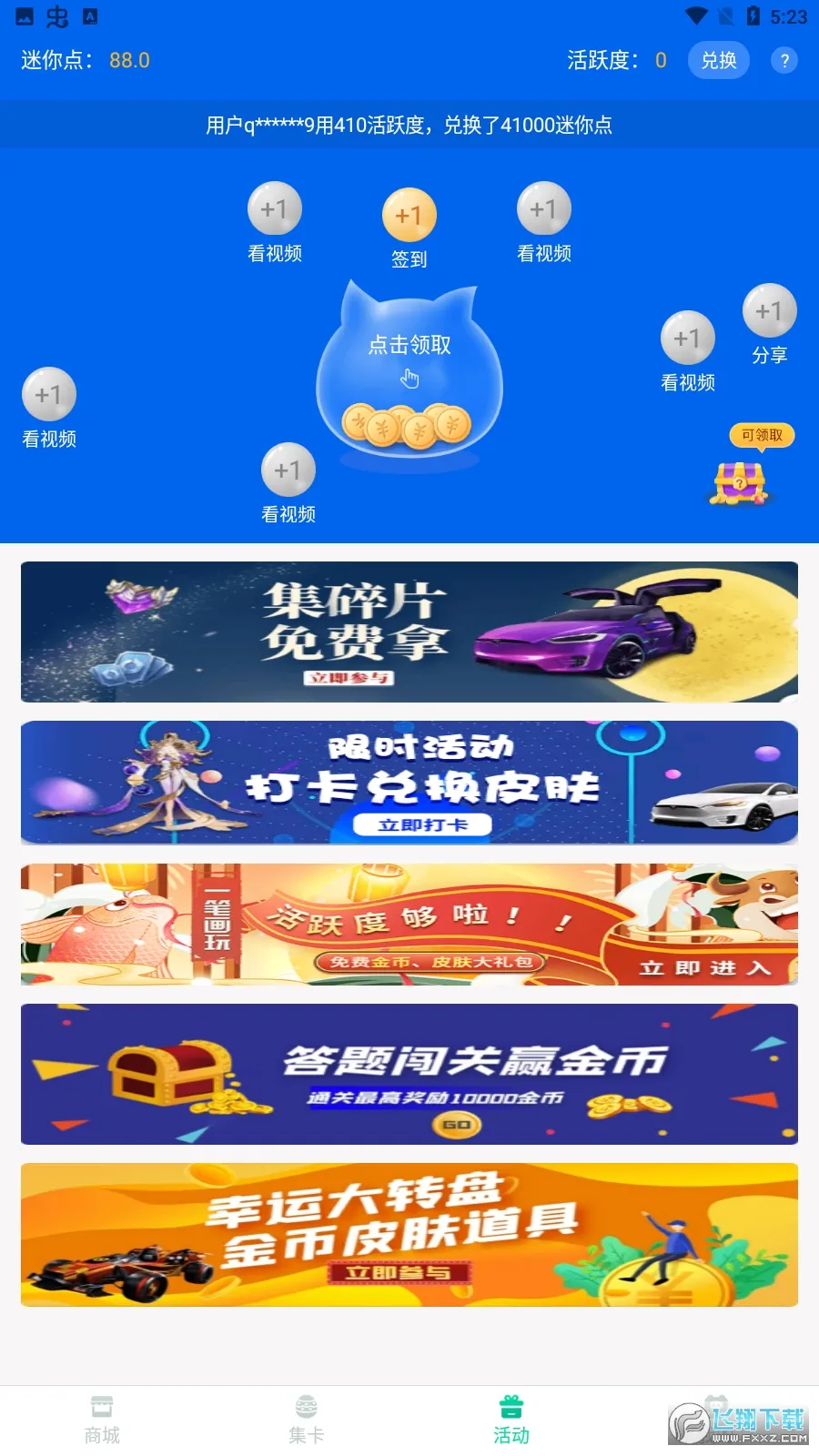 3. 玩法多样,能通过集卡、抽奖、攒积分等方式领取商品。