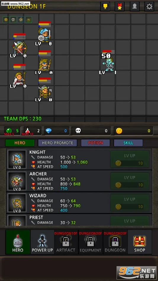 1. 能与像素世界勇士一同追捕地下城怪物,收集黄金来强化武器装备。