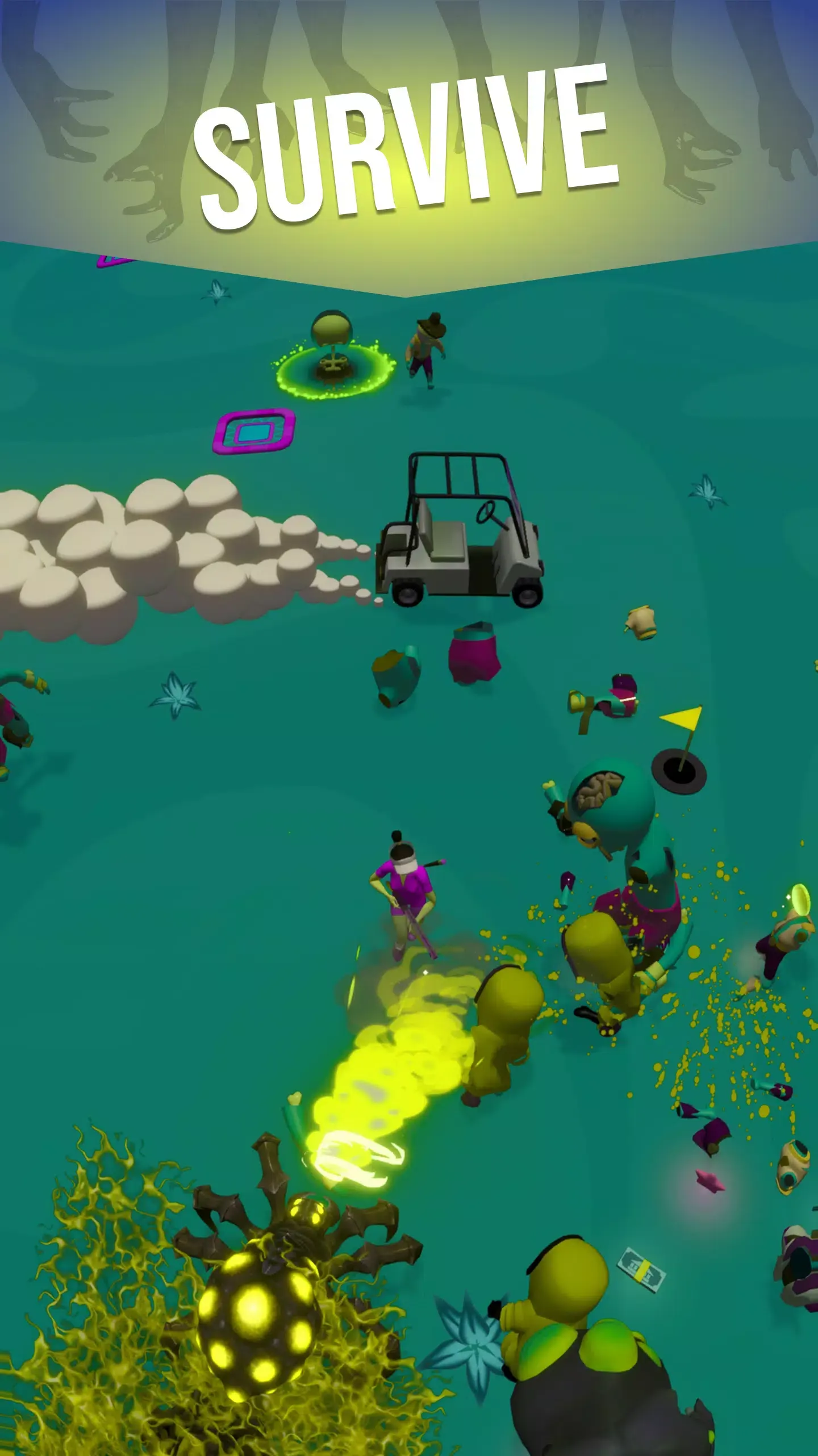 1. 独特动作生存类roguelike游戏,在末日中求生,面对亡灵打出完美一杆,升级武器智胜敌人,驾驶武装高尔夫球车穿越球道。