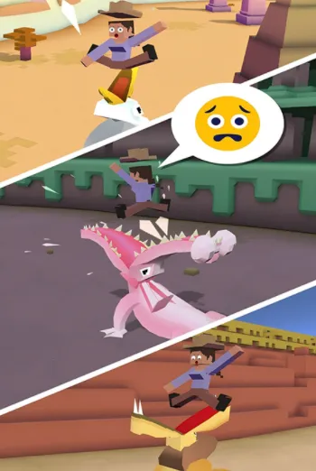 3. 基本操作简单易上手,长按屏幕驾驭动物奔跑,手指划动改变方向,松开跳起,再按跳到套索动物身上,注意别撞障碍物和狂暴动物。