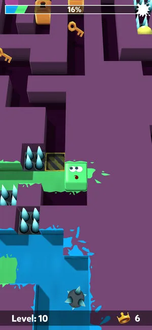 它的玩法丰富多样,比如寻找钥匙推进游戏进程,通过控制小方块滑行解锁关卡,体验独特冒险。画面精美,让你沉浸在绚丽彩色世界。每次滑行都会留下彩色路径,创造个性化涂鸦效果。操作时,方块移动轨迹实时染色,碰撞障碍有色彩爆炸特效,还有渐变光影,视觉冲击力超强。单指滑动就能控制,支持重力感应与虚拟按键模式。另外,设置了全染色通关、无碰撞通关等特殊成就,收集的色彩能量能兑换方块皮肤与迷宫主题,给你更多乐趣和惊喜,快来试试吧!