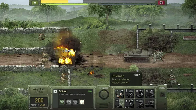 3、各游戏版本对部队控制精细,可使用多种战术,如在《战争1917》中利用坦克主宰战场,在《战争1944》中呼叫支援等。