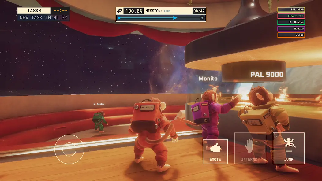《猩空大冒险2026》即太空猴子号,是支持18人合作的多人动作游戏。可线上联机或离线单人玩,有40款小游戏,能升级舱室、打造专属飞船,还有6种难度模式含无限模式,带你探索神秘深空。