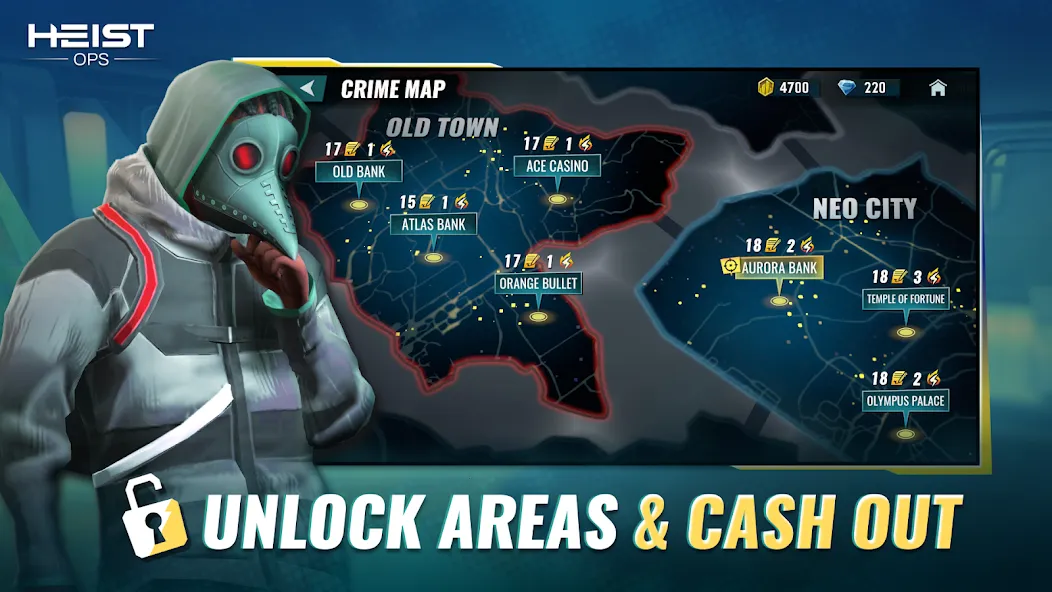 4、收集战利品解锁新英雄、升级装备,挑战更高难度劫案,享受快速行动与丰厚奖励带来的纯粹乐趣。