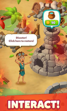 2、匹配融合相同物品创造奇特石器时代工具,解锁新资源升级和生产链,让村庄繁荣。