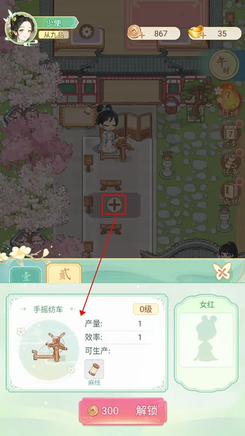玩家可以点击纺织区域的加号,新建纺织机。