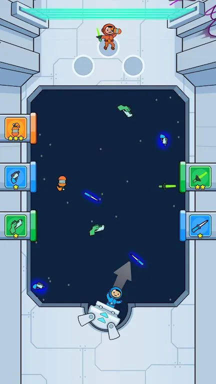 4. 让宇航员在零重力环境下拾取武器战斗,控制飞行轨迹避开障碍收集奖励。