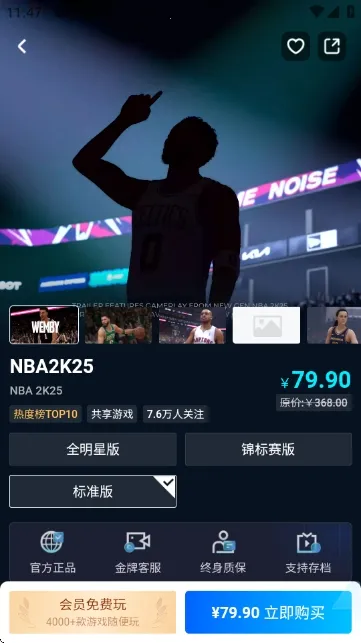 4、点击页面下方“立即购买”按钮,即可在线完成游戏购买;新用户首次购游还可享受专属优惠折扣,超值入手心仪大作。