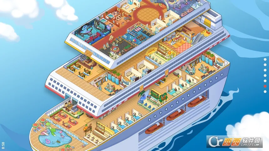 1. 可亲手打造梦幻豪华游轮,从普通客舱起步,逐渐发展为设施完备的豪华巨轮。