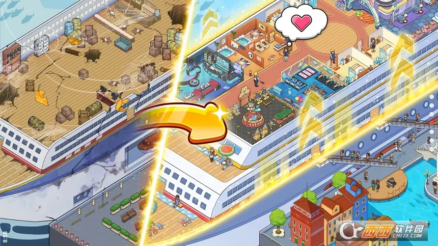 《我的游轮破解版 1.9.8》带来了独特体验,从普通客舱起步打造豪华游轮的过程充满成就感。