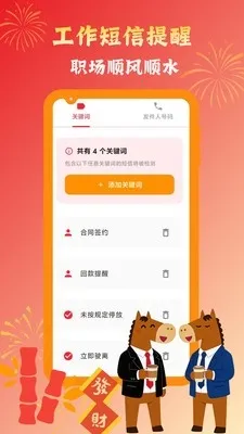 1. 可自定义效果,针对不同用户设置关键词与号码,收到匹配内容即刻触发警报。
