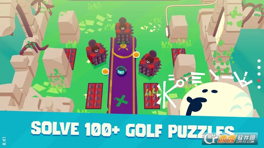 2. 丰富关卡挑战,超100个难度递增关卡,目标是以最少动作让卡尔进洞,还有凶险妖怪巡逻。