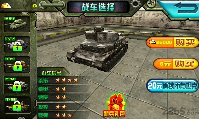 2. 玩家可驾驶坦克战斗,摧毁敌人武器,还有多种坦克可选。