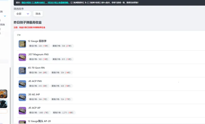 4. 实时战备交易行数据取自真实游戏内,与游戏保持一致。