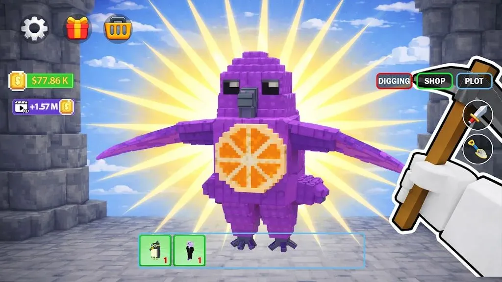 1. 探索神秘土地,挖掘隐藏的蛋,孵化出各种搞笑生物,打造专属收藏。