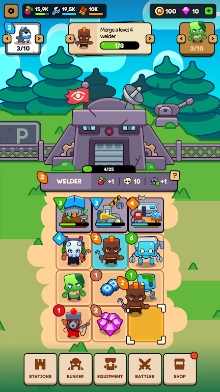 1. 游戏将玩家带入僵尸末日世界,玩家肩负重建庇护所、组织防御并带领团队活下去的使命,主打放置类 RPG 元素,通过合成壮大实力。