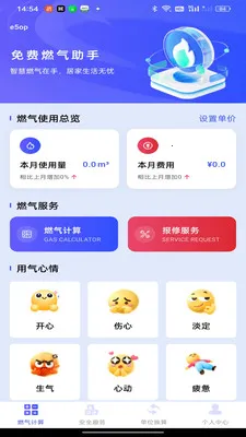 3、设置用气心情板块,通过趣味表情反馈用气体验,让使用更具互动性。