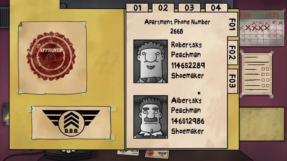 《这不是我的邻居》是一款超刺激的烧脑解谜游戏。在游戏里,玩家扮演小区单元的门卫,每天要审查来往人员身份,不能让作恶多端的伪人进入。你得从他们的交谈、神情语态中找线索,仔细观察每个细节,因为稍有差错后果严重。