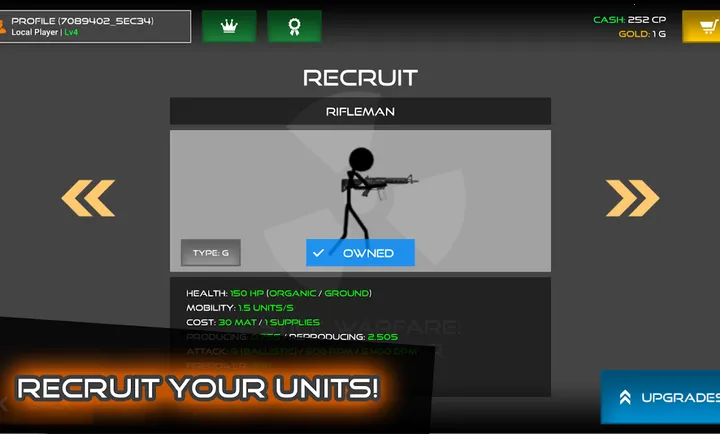 4. 可强化称霸战场,通过战斗赢取资源解锁升级新单位,还有全局升级提升能力。