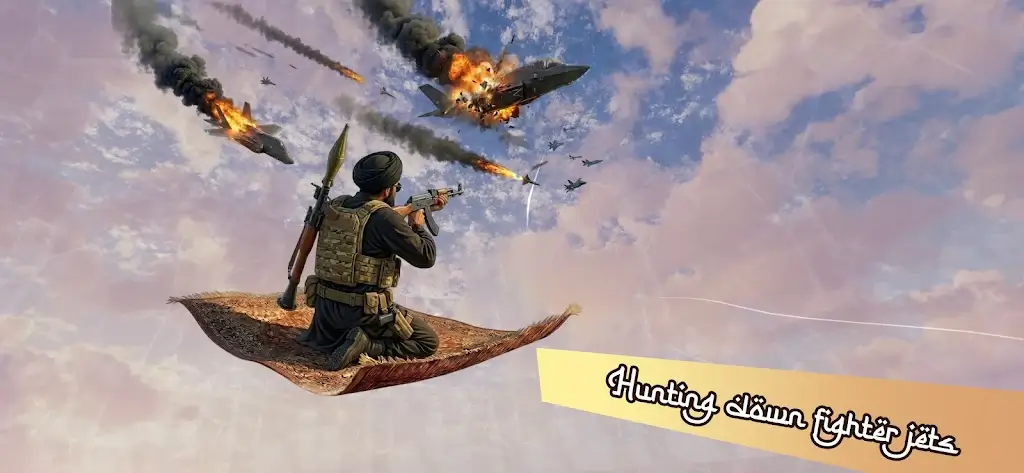 游戏背景独特,融合魔幻与现代战争元素,骑乘飞毯在空中战斗,带来全新体验。