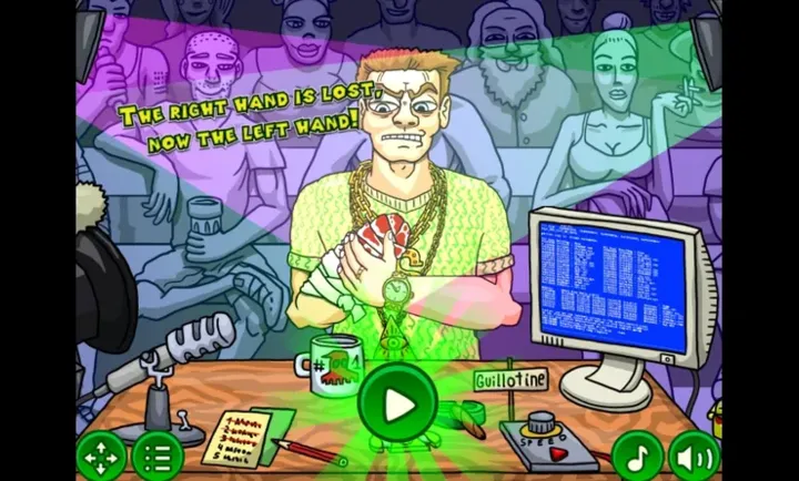 1、游戏设定独特,参加节目有机会成千万富翁,只需在断头台间快速拿现金,玩法新奇。
