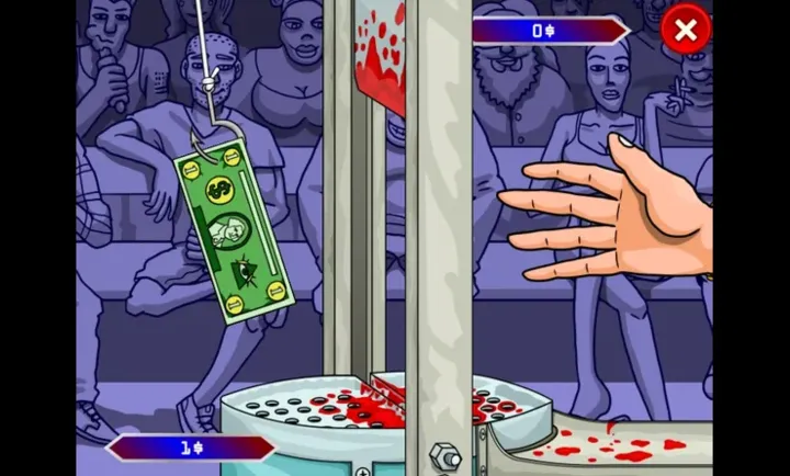 拿钱模拟器2026第三季回归!玩家参加游戏节目,在锋利断头台间快速拿现金,可左右手各试一次,能玩额外回合建银行,刀片速度渐快,考验手速与胆量,非胆小者勿入。
