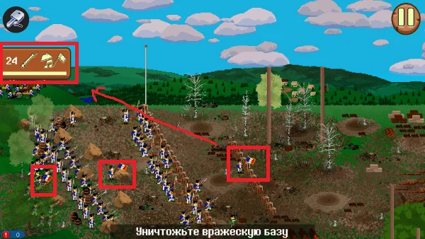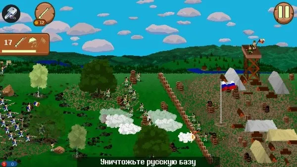 1812法国突击中文版是像素风策略塔防游戏,以拿破仑入侵俄罗斯为背景。玩家扮演指挥官调遣兵种进攻敌方城堡,有丰富道具武器,多种战役模式,天气季节影响战局,需统筹补给升级装备突破防线。