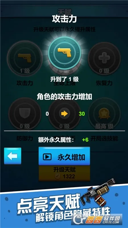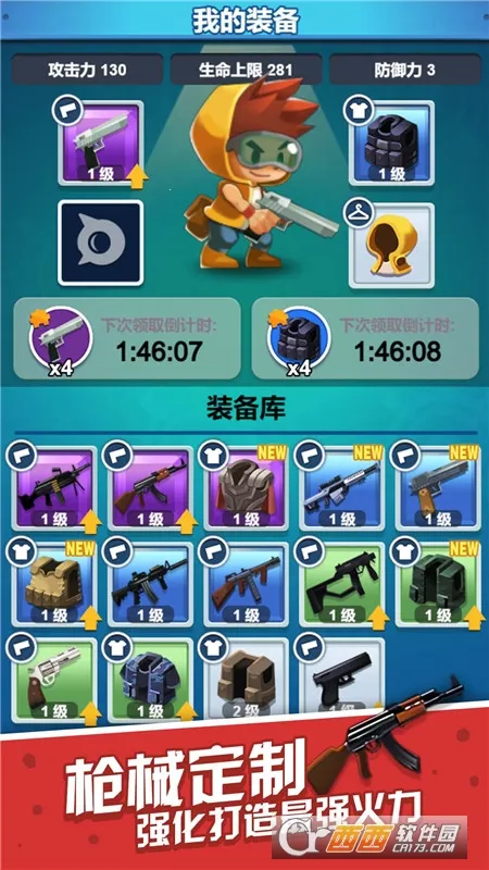 3、武器装备丰富,能自由选择并解锁,战斗中可升级装备。