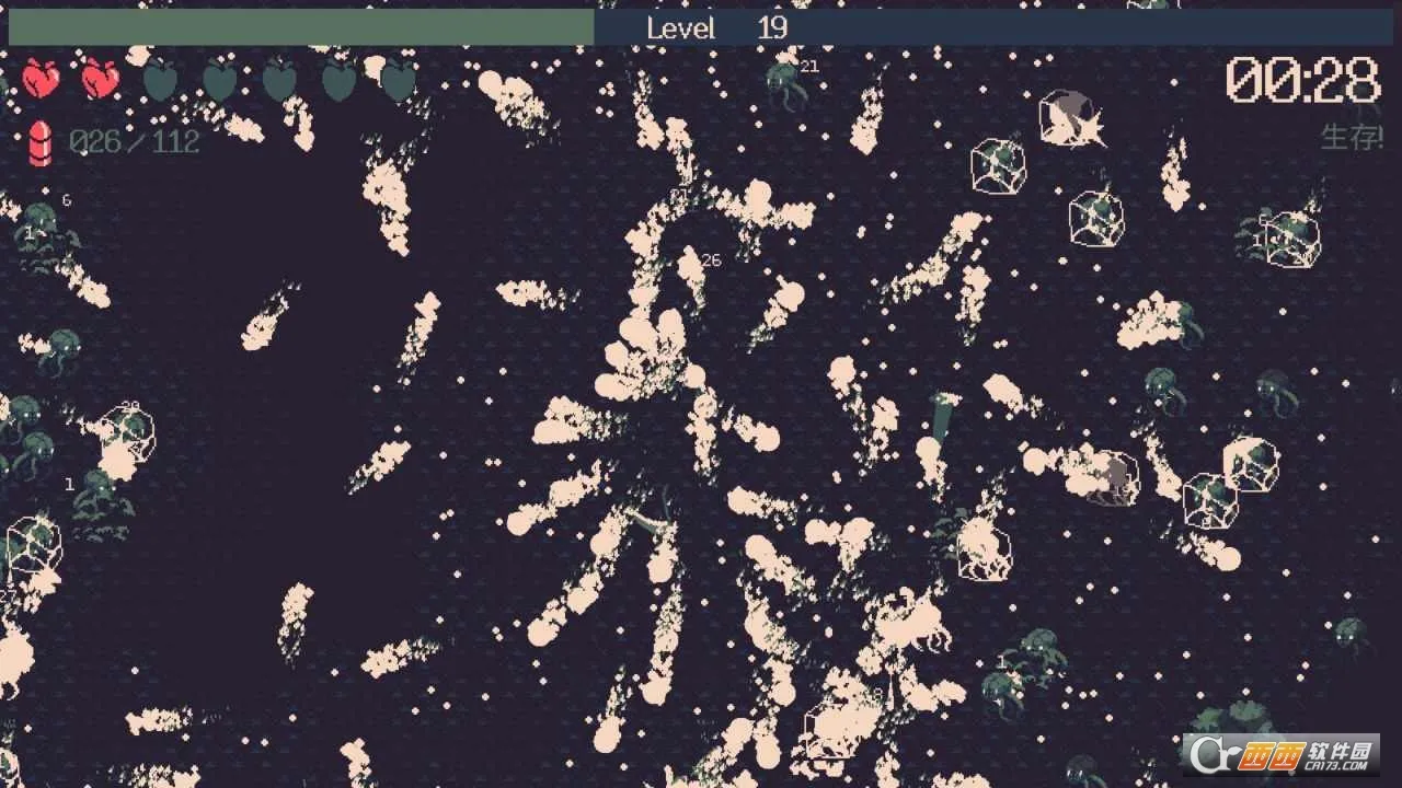 3. 以像素块还原克苏鲁神话怪物,攻击方式设定合理,清屏同时需注意走位。