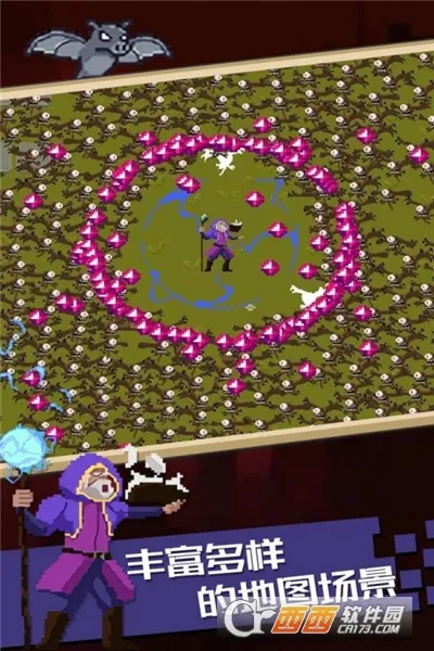 4、操作简单易上手,通过虚拟摇杆控制角色移动,拾取宝石升级获取武器技能,轻松畅玩。