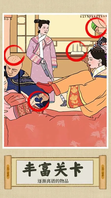 1、该游戏玩法新颖,需在古画中找不符合时代特征的物品,打破常规意识束缚,逆向思维与眼力的双重考验让人绞尽脑汁又意犹未尽。