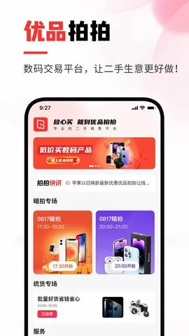 优品拍拍是深圳市换换数码旗下的二手数码交易平台,无中间商,价格优惠。有专业质检团队,商品种类丰富。提供专人售后、多样交易场次,还有便捷购买流程与快速物流。