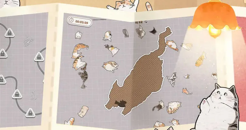 4、治愈互动体验:完成关卡拼图后可与猫咪互动,搭配数十种猫咪真实叫声,还有轻松背景音乐,营造舒适治愈的游戏环境。
