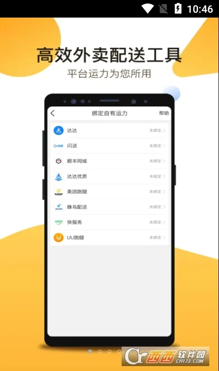 4、订单自动同步:支持绑定主流平台商家账号,商家订单自动同步至app并唤起发单,无需人工干预。