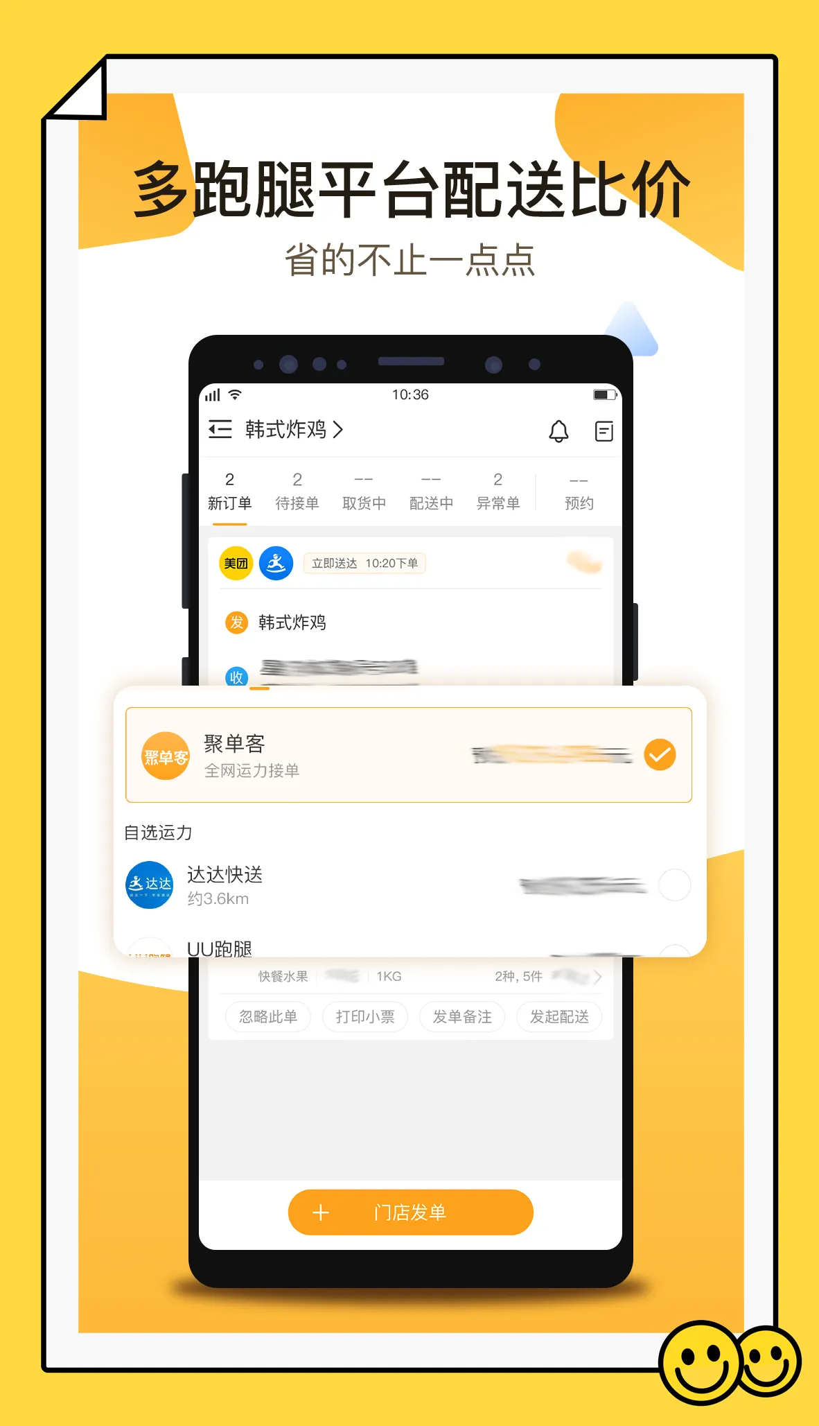 4、订单自动同步,绑定商家账号后订单自动同步至 app 并唤起发单,全程无需人工操作,极大提高了店铺运营效率。