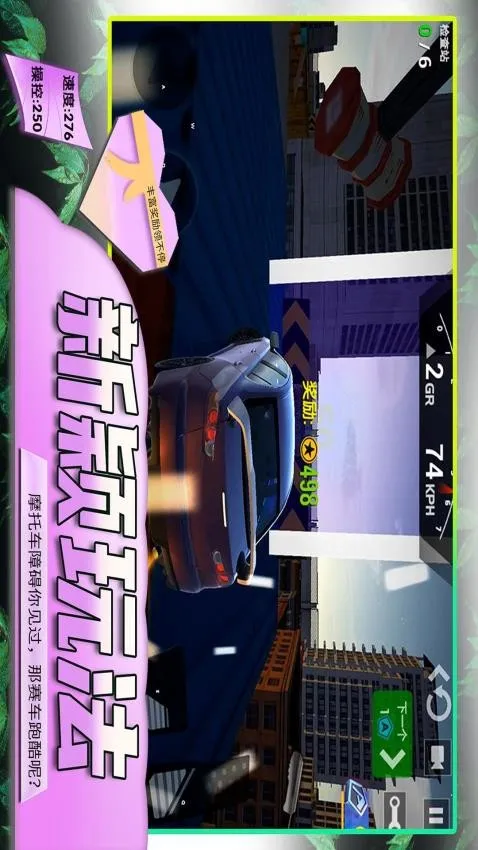 2、爽快竞速:可选择适合自己的赛车在众多赛道中冒险,自由驾驶完成游戏任务,体验风驰电掣。