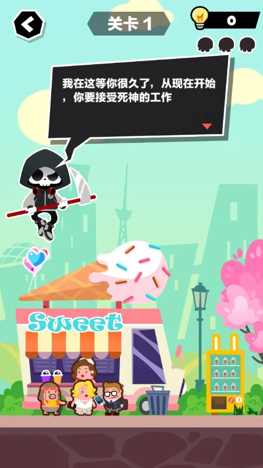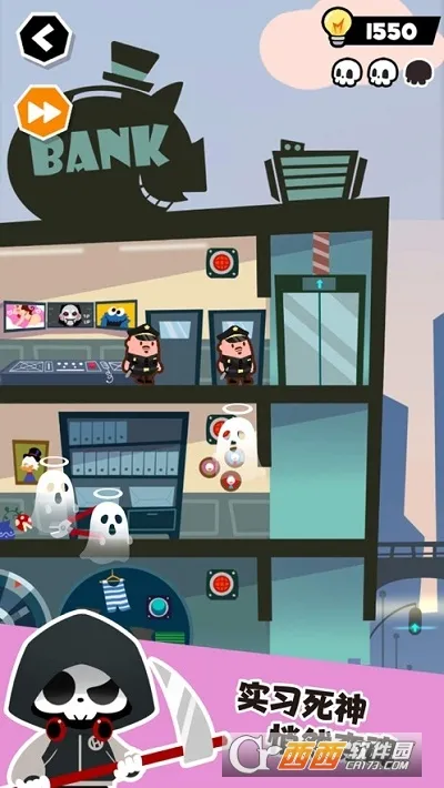 3、能感受死神工作的超强爽快感,通过制造意外收割人类灵魂,每个章节独特的搞笑互动场景十分有趣。