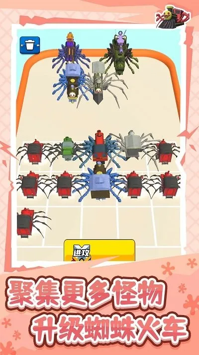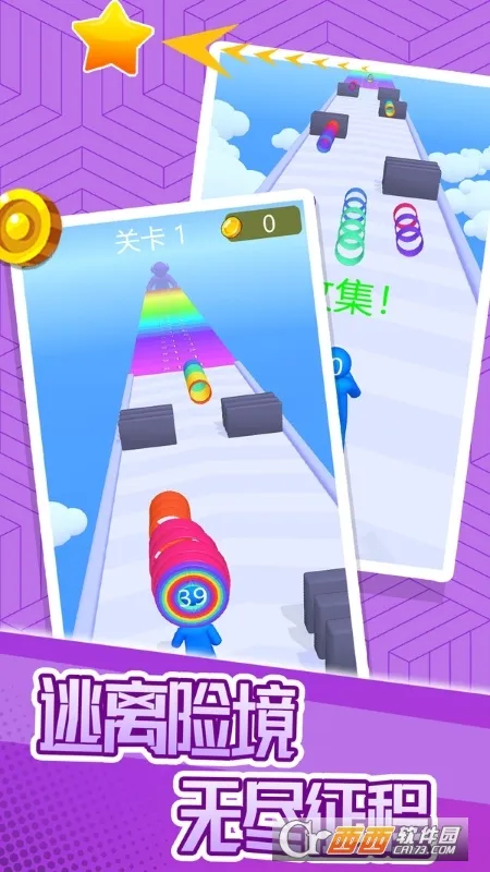 1、玩法丰富有趣,融合跑酷、战旗、闯关等元素,通过控制角色捡圈圈、合并怪兽升级,越过障碍物闯关。