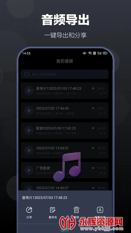 4、导出分享便捷:支持合成语音一键导出,可快速分享至微信、QQ等社交平台。