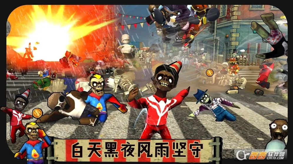 2、全天候挑战,无论白天黑夜、刮风下雨,都要坚守阵地抵御僵尸,代入感强。