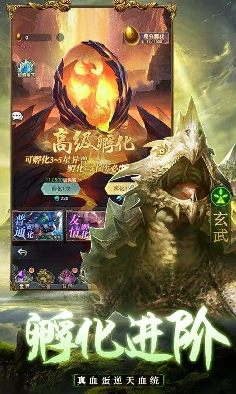 1、丰富的养成玩法,有羁绊系统、孵化卡池系统等,可自由搭配属性加成、抽取异兽卡牌。