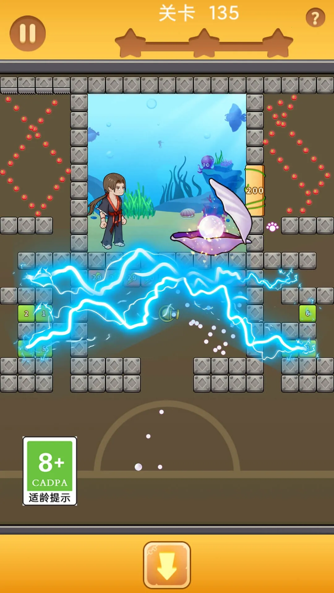 2、操作创新:采用重力感应玩法,通过晃动手机控制弹球,调整方向绕过陷阱。