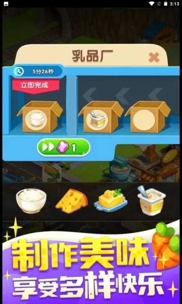 2、玩法丰富多样,可种植养殖、加工农产品,完成任务获丰厚奖励。