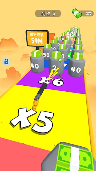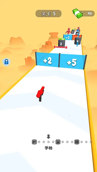 2、其玩法丰富有趣,简单的左右移动操控小人跑酷,途中可合体成枪械,消灭障碍,到达终点还能获丰厚奖励。